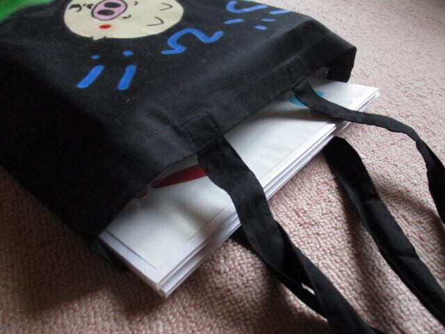 【送料無料】絵本ぶひオリジナルキャラクター 定番トートバッグ(ブラック) #縦型トートバッグ #薄型&軽量 #シーチング生地 #A4サイズが入る #100%コットン #ぶひ #ぶた #かわいい #おしゃれ #癒し